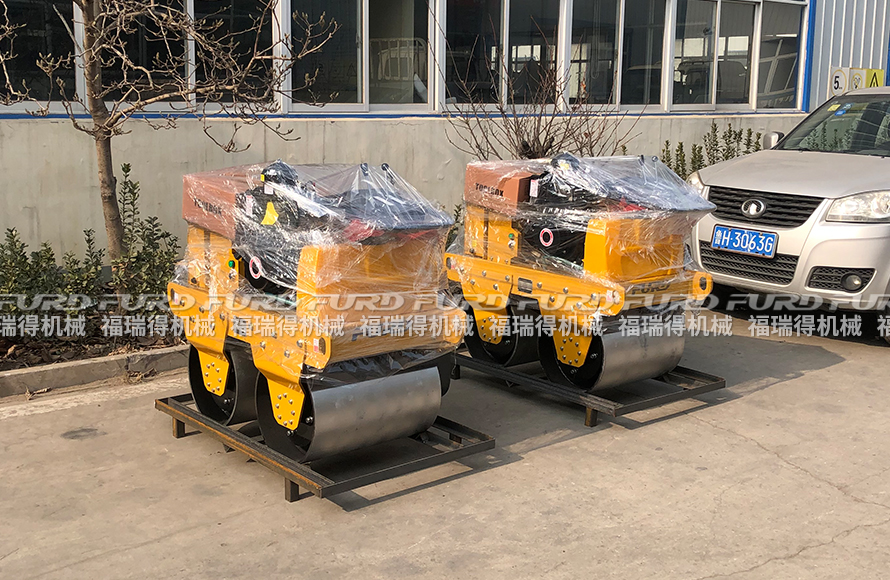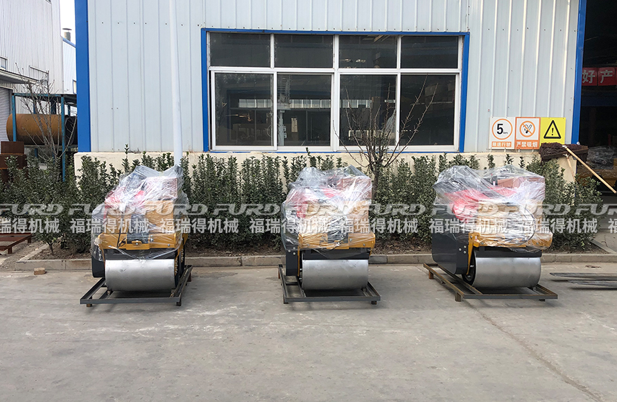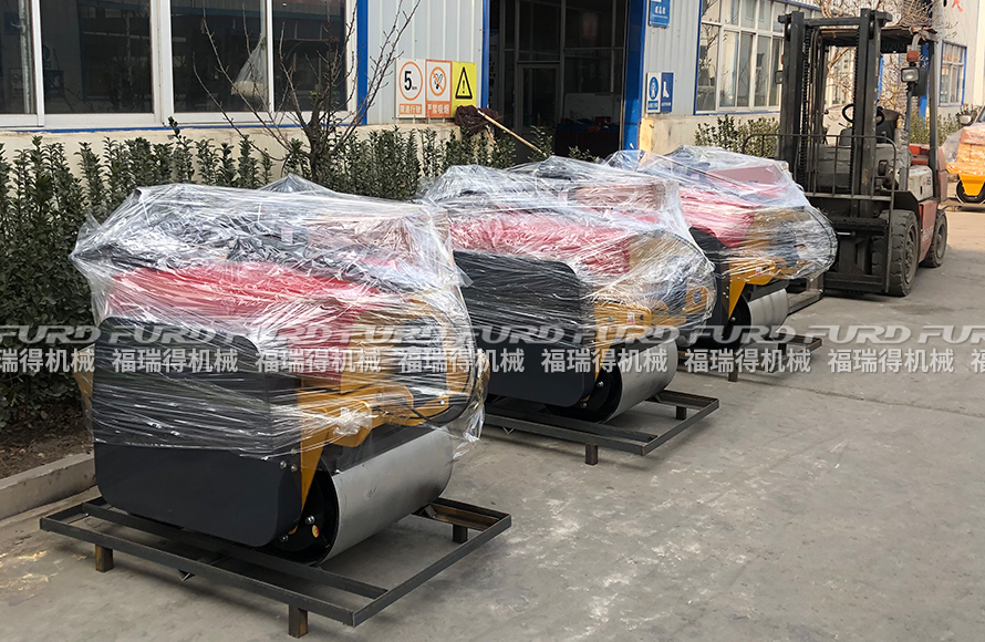 1月26日 福瑞得機(jī)械5�_(tái)手扶�p�壓路機(jī)打包�b箱出口南非。